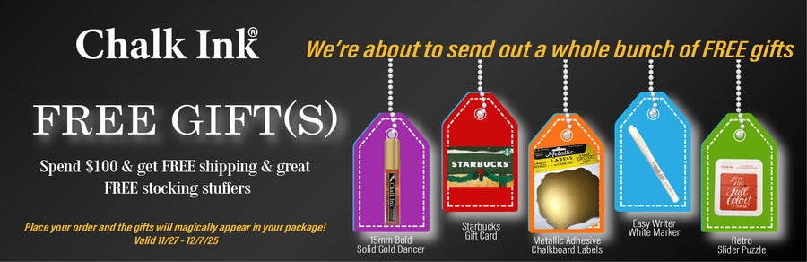 From home crafts to successful business ventures, displaying your message makes a project uniquely yours. Our chalk markers are extremely popular with large franchises such as Starbucks, and it’s no wonder! Chalk markers are perfect for creating large-scale and small, detail-oriented designs that can change with the seasons with half the fuss of any other medium. Not to mention, buying in bulk with us is a snap. Chalk messages give you a simple, fun, and traditional way to create signs, display menus, label products, and so much more. No matter your message, say it loud and proud with Chalk Ink’s chalk paint markers. Bold colors, easy clean up, and bulk ordering simplify customizing any project in any way you want. Chalk paint markers are gorgeous and easy to use across a wide range of surfaces. Liven up a room, entice customers, or add that something special to your next big event. You can also order bulk chalk markers so that you can keep creating fresh and stylish displays over and over again.